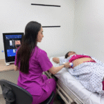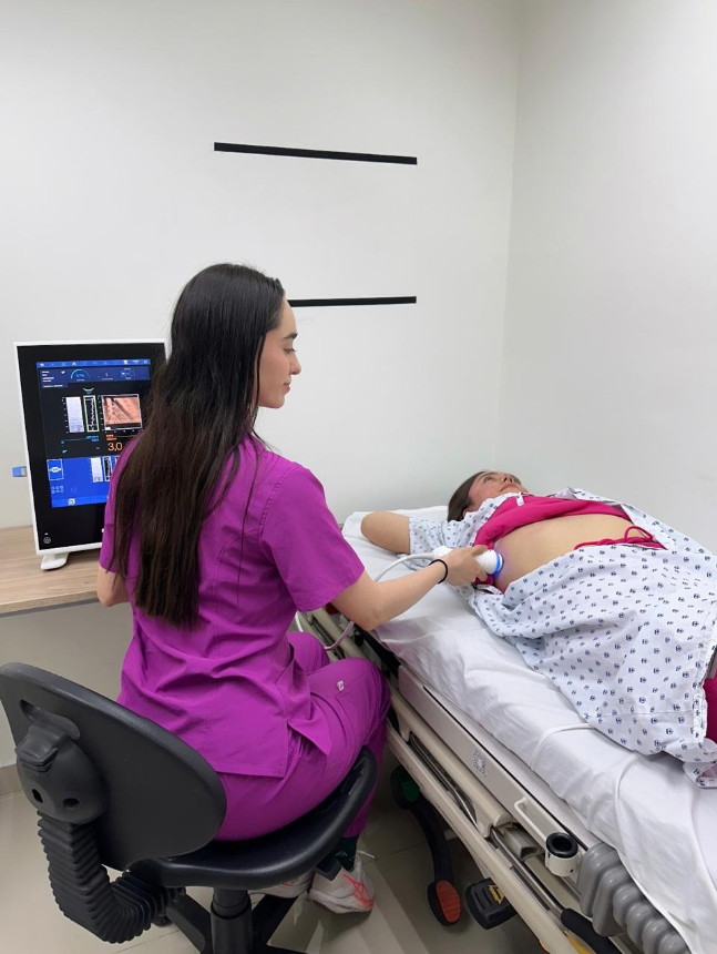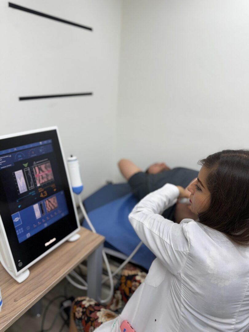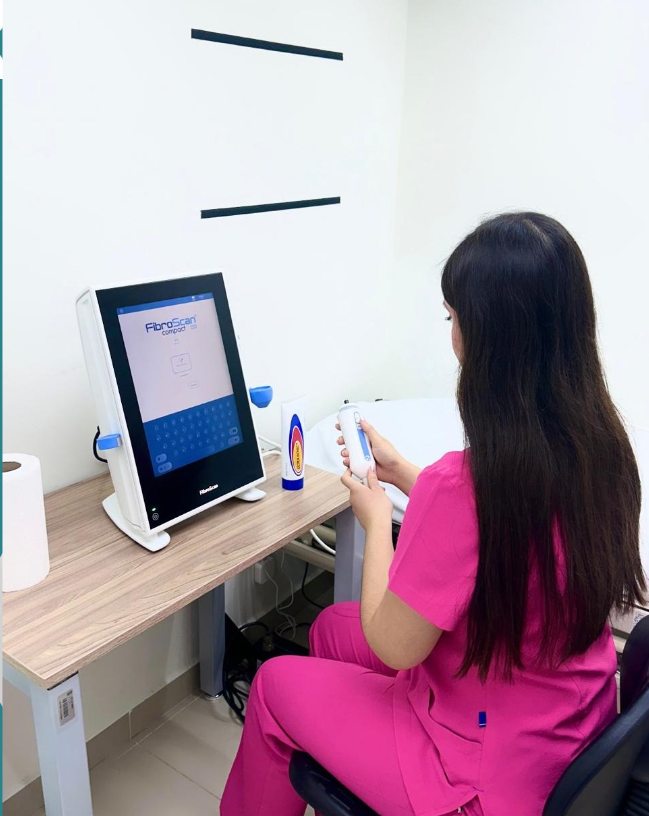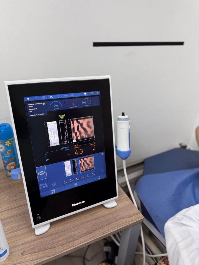Using elastic waves, it measures the stiffness and amount of fat in the liver,